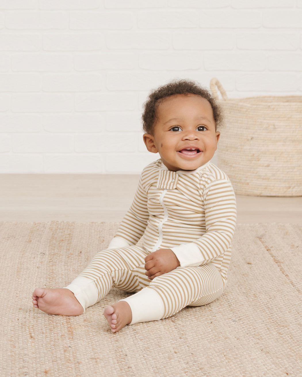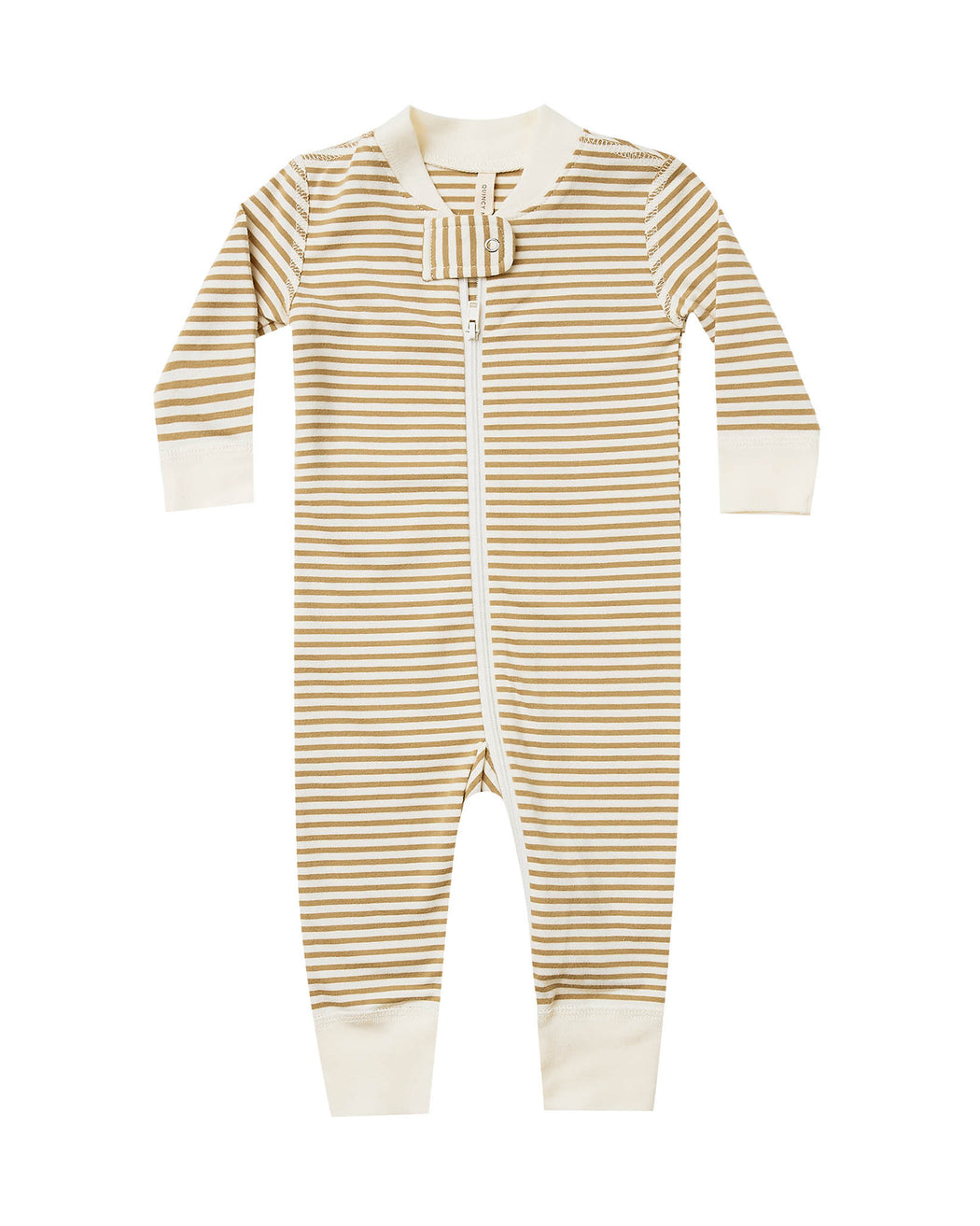Easy diaper changes with this zip onesie. Pairs with matching 'Gold Stripe' accessories.