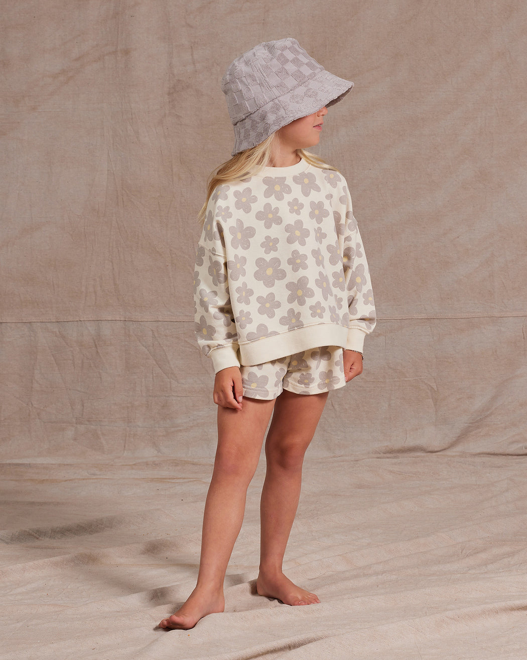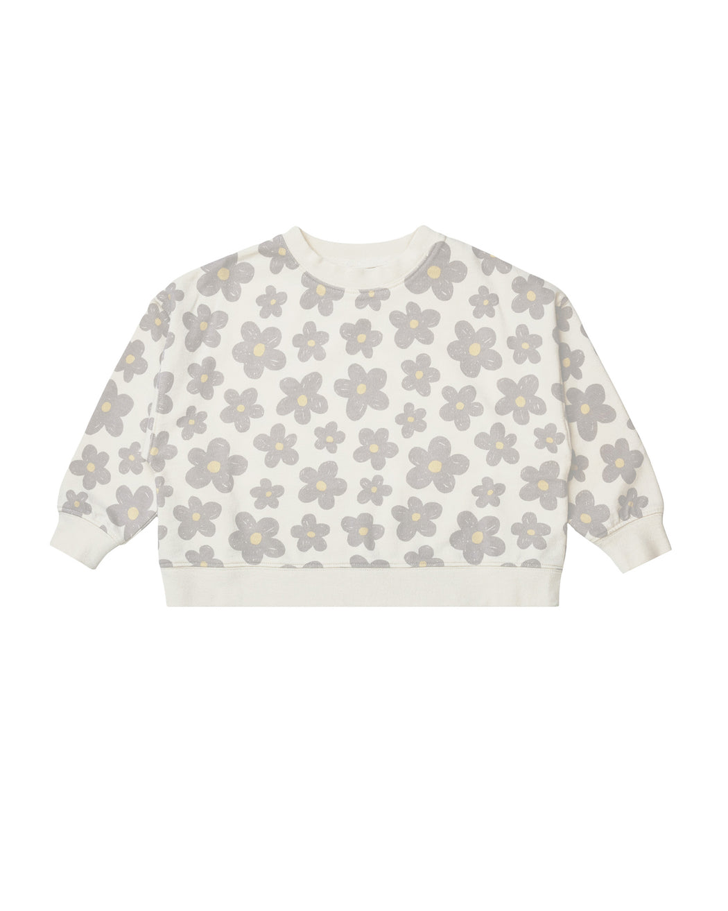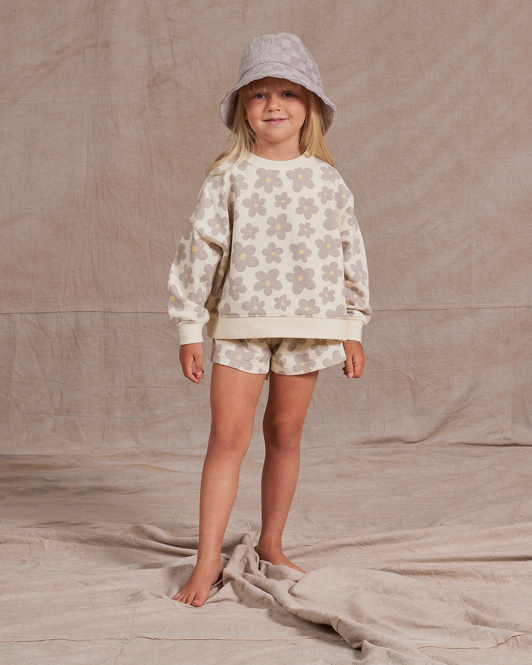 Super comfy oversized boxy fit pullover sweatshirt in an ultra-soft french terry fabric, perfect for play + lounging! Slightly cropped length. Pairs perfectly with matching shorts.