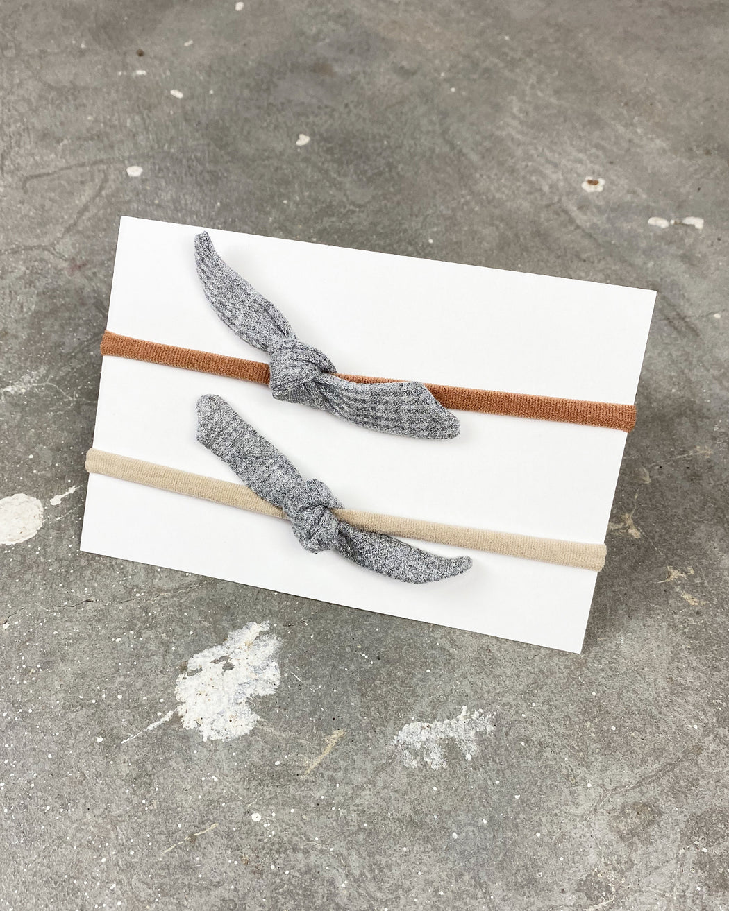 Sweet little mini bows on your color choice of stretchy nylon headband to best match your little one's hair or skin color. Can easily be untied and re-tied on elastics to grow with your child's hair styles.