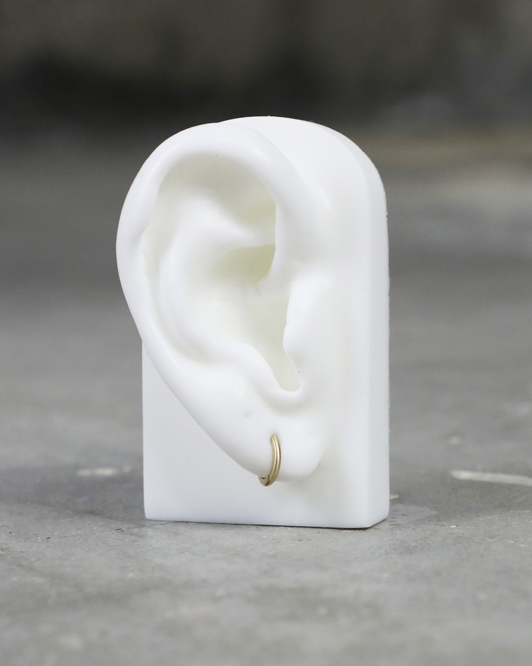 Matte, satin finished 14k yellow gold huggies for a soft look.