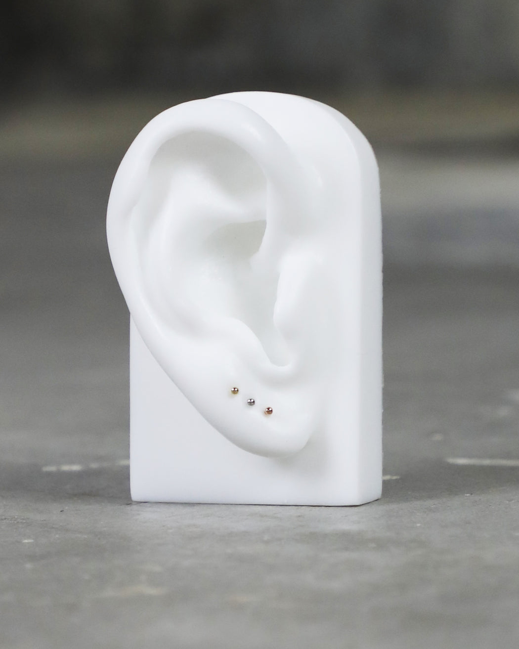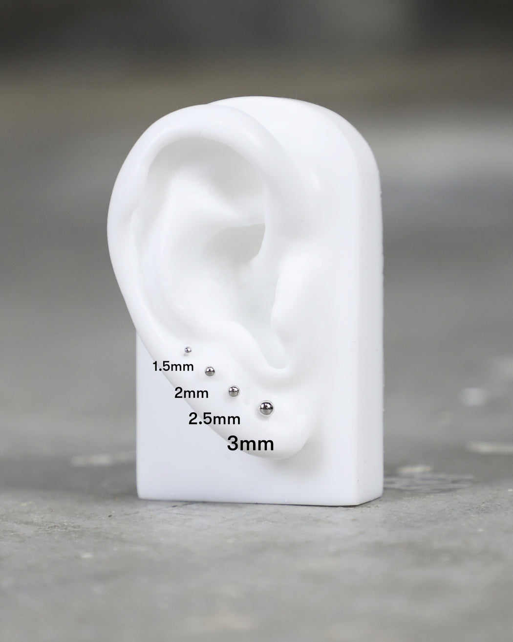 – Maria Tash makes this small size a dome, as opposed to a ball, to prevent the jewelry from going inside the piercing (but it's very small, so not recommended for most lobe piercings)