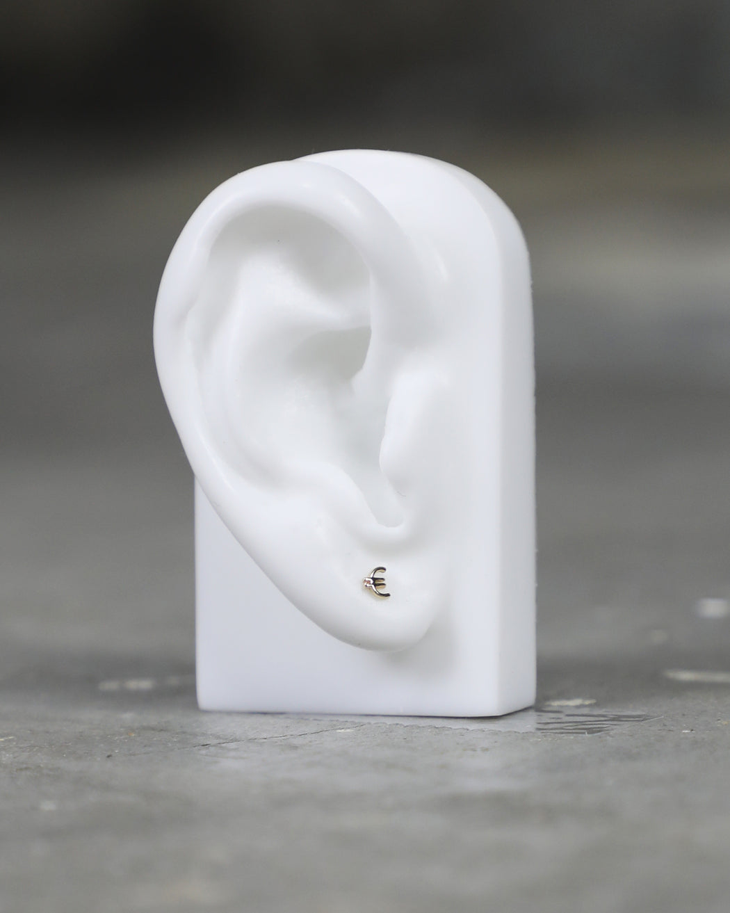 A teeny tiny 14k yellow gold stud with a high polish finish.