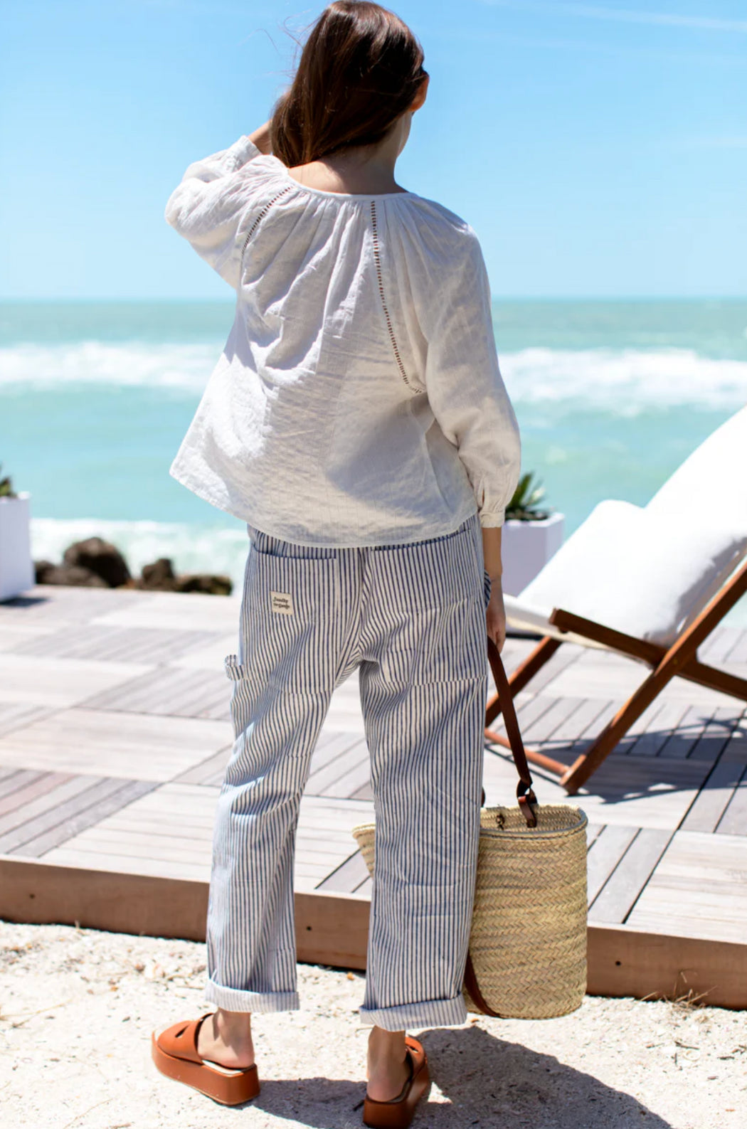 Easy comfortable go-to pants with a drawstring waist + elastic back panel at back waistband for fit. Features camp pockets at the front with patch pockets at the back.