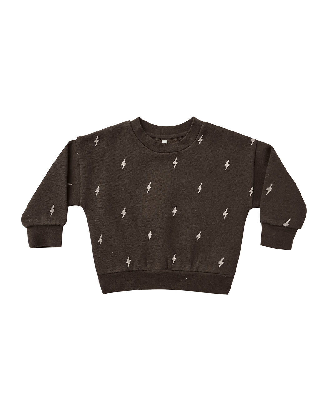A loose fit crew neck pullover in a soft and cozy sweatshirt fabric. Pairs with matching jogger pants.