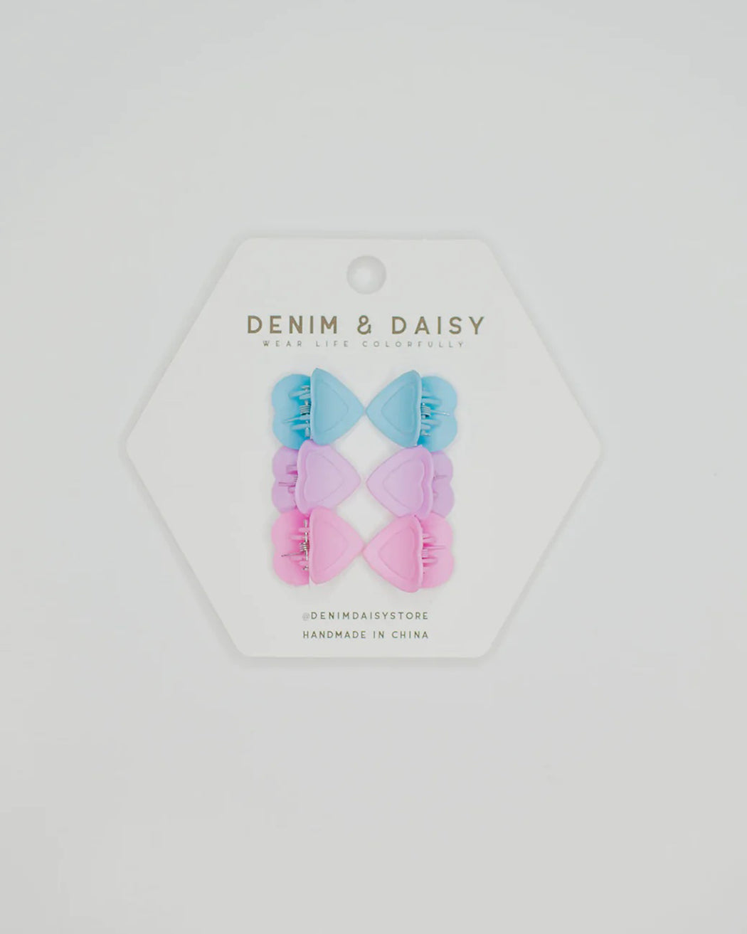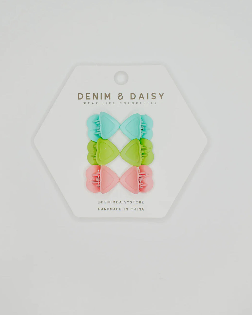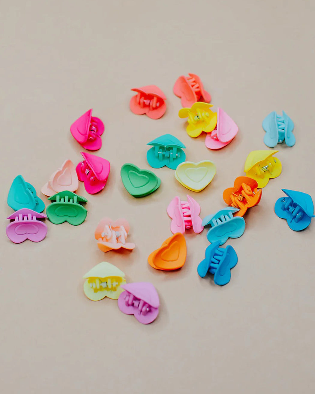 The cutest, tiniest, mini-est, little matte heart hair claws. Each set comes with 3 different colors in sets of 2!