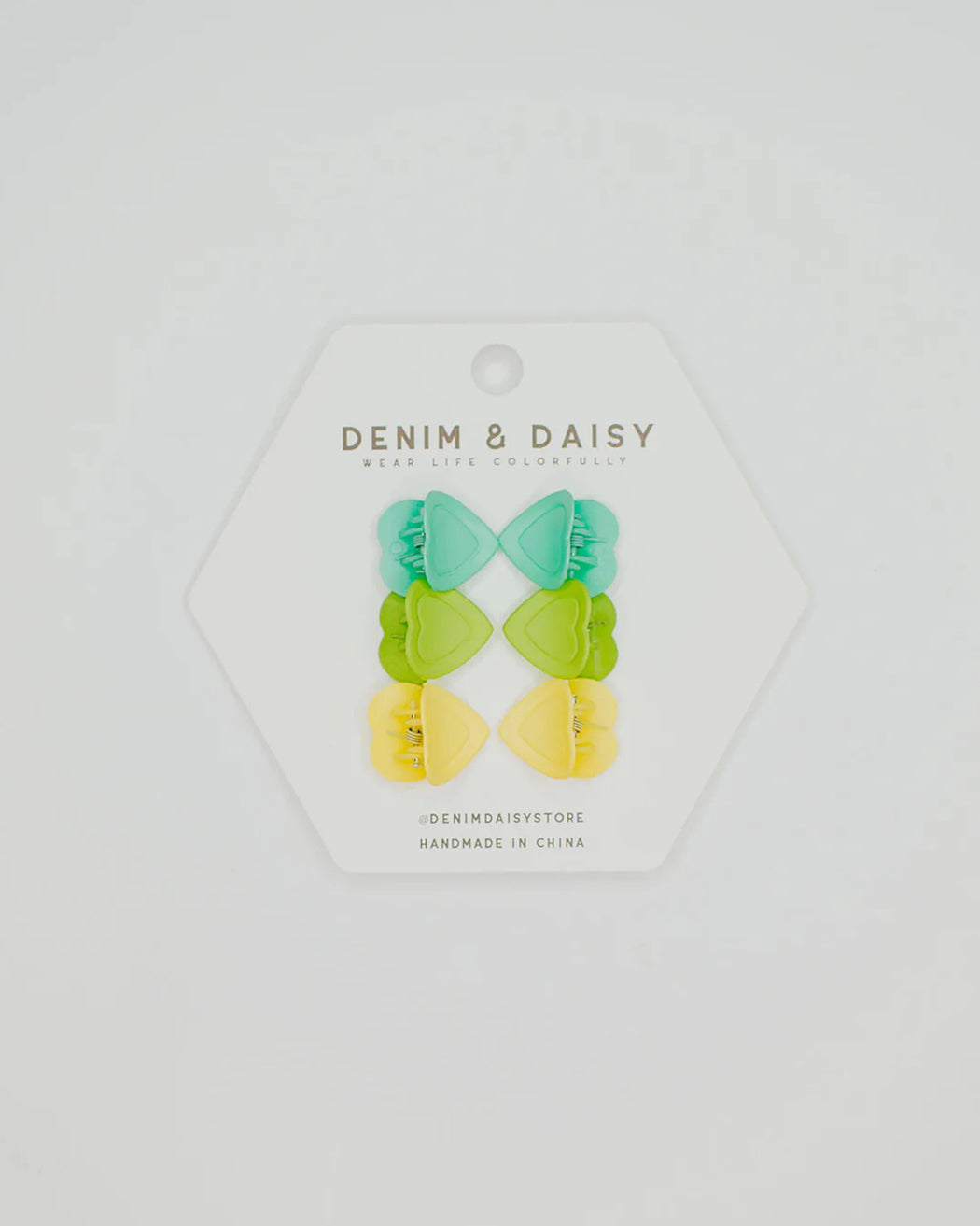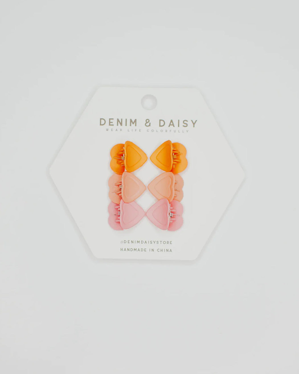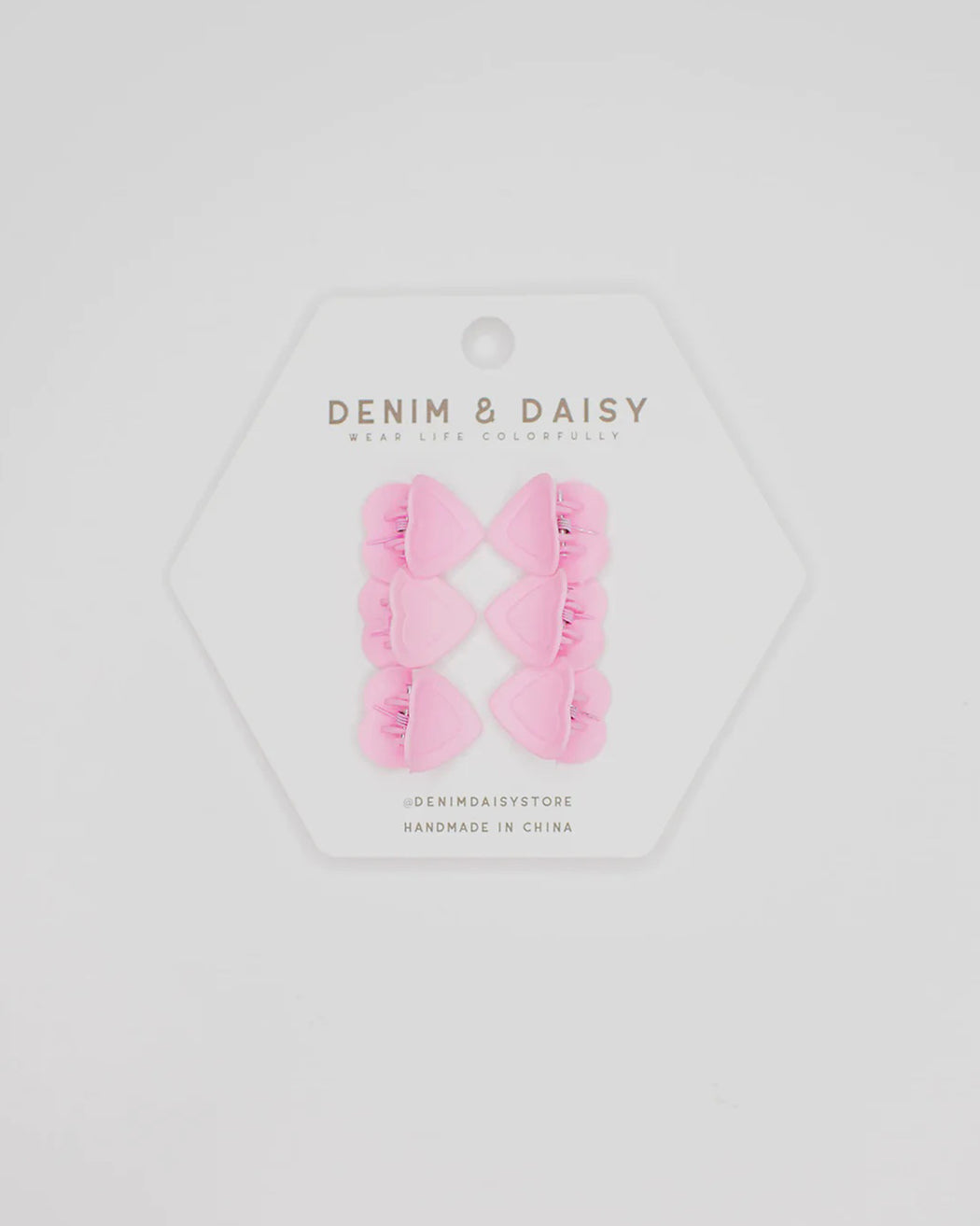 The cutest, tiniest, mini-est, little matte heart hair claws. Each set comes with 3 different colors in sets of 2!