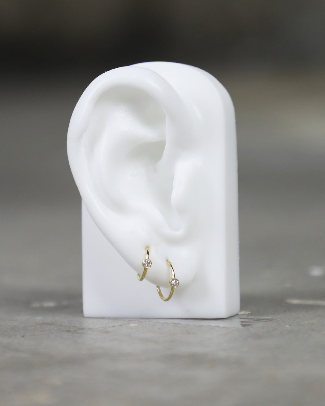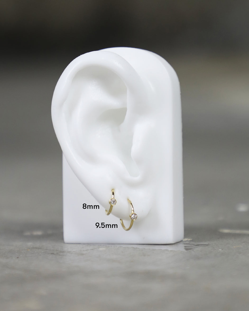Solid gold seamless snap ring with a 2mm white diamond set in a scalloped edge bezel.