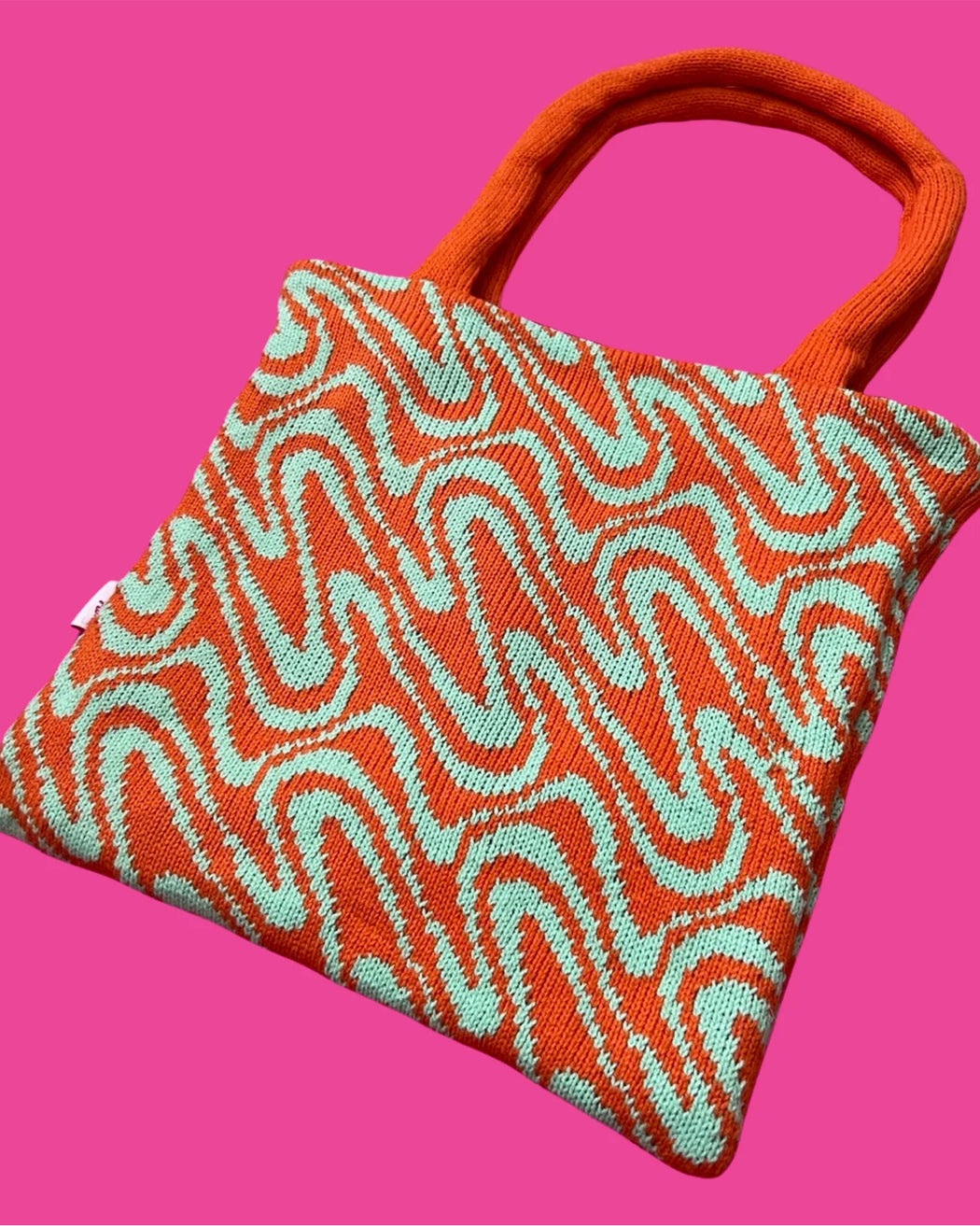 Unique knitted tote handmade in England! The perfect accessory for any occasion.