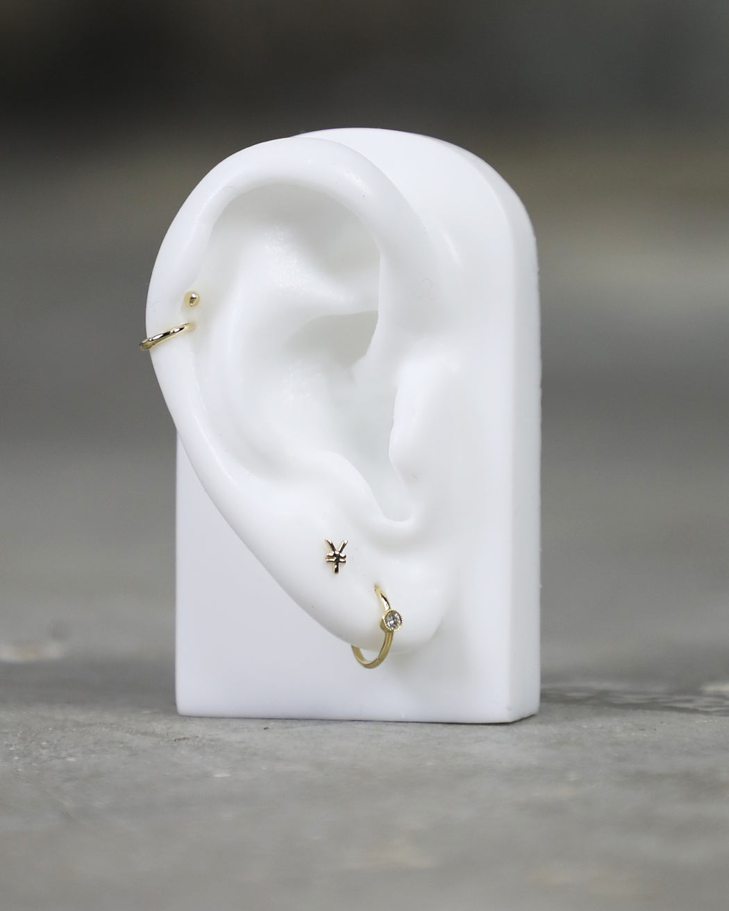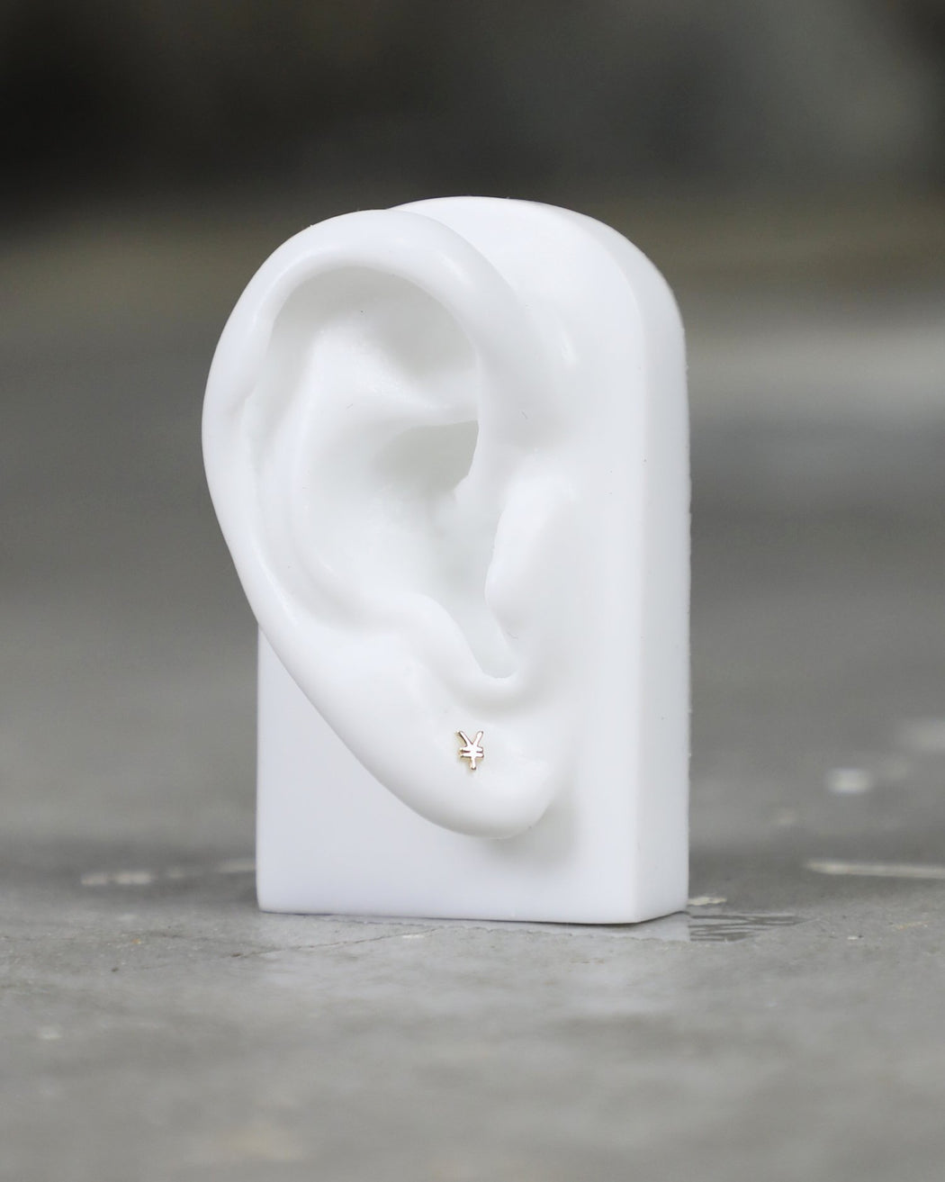 A teeny tiny 14k yellow gold stud with a high polish finish.