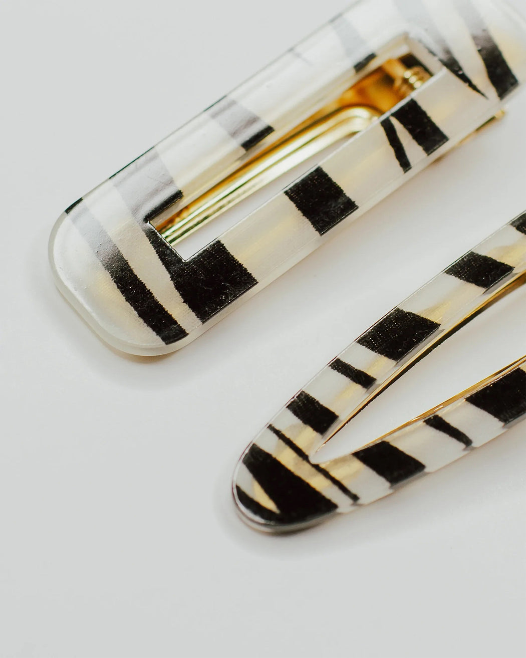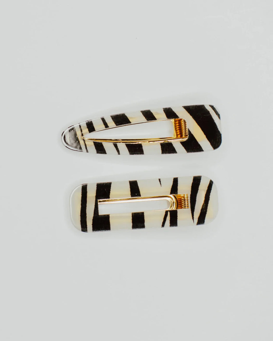 Unleash your inner animal and grab yourself a set today! Each set comes with a zebra resin, triangle and rectangle-shaped gold alligator hair clip.