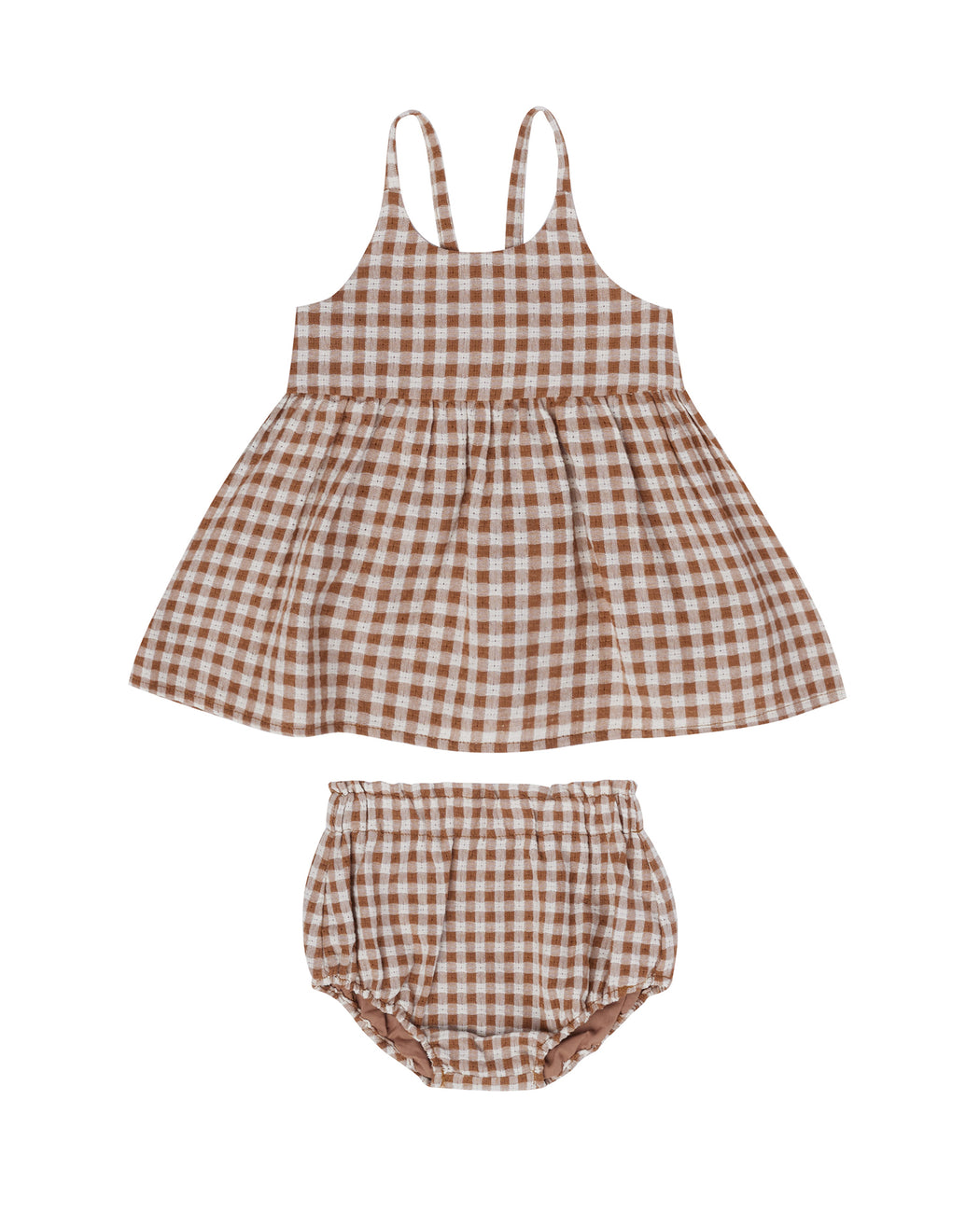 This set features adorable bloomers with ruffled details and a cute swing tank top featuring spaghetti straps and an elastic back. Pairs with matching accessories and adult items!